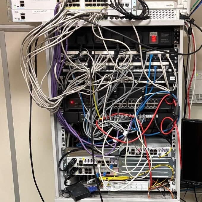 The client’s existing network cabinet had become overcrowded and disorganised, with tangled patch leads, poor labelling, and unmanaged cabling that made maintenance and troubleshooting difficult. The setup posed risks of accidental disconnection, overheating, and network downtime.
